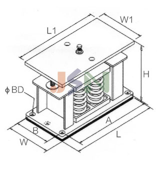 JA型弹簧减振器扰度25mm,在额定载荷下固有频率3.2Hz,阻尼比为0.03,是积极、消除减振的理想产品。