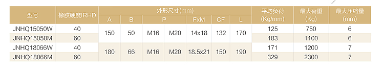 JNHQ减振器在轴向压力及侧向压力可达到高度的减震效果,尤其用在发电机、引擎和系统方面,减震效果非常良好,运用范围大约在25Hz (1.500rpm)。
